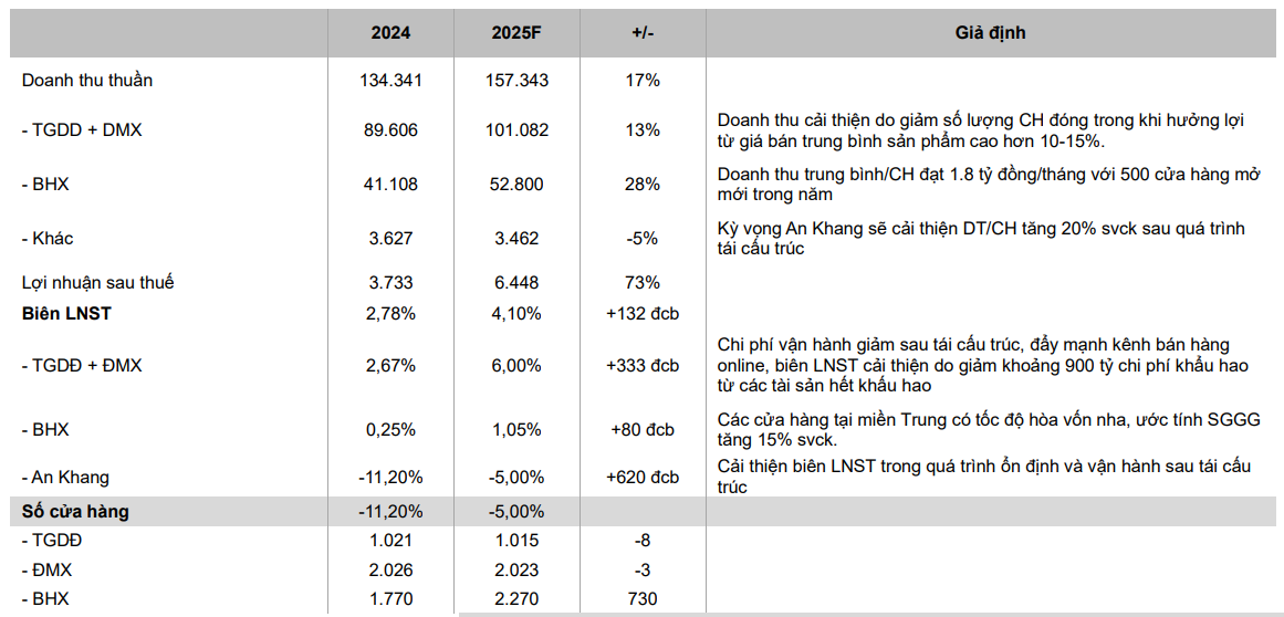 VCBS dự phóng kết quả kinh doanh các chuỗi của MWG trong năm 2025