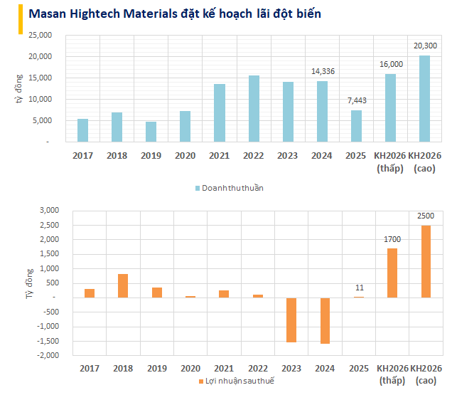 Đồng bộ với chiến lược mở rộng trên thị trường vốn, kế hoạch kinh doanh 2026 của Masan High-Tech Materials phản ánh rõ nét việc doanh nghiệp đã bước vào một quỹ đạo tăng trưởng mới với những con số mục tiêu đầy tham vọng.