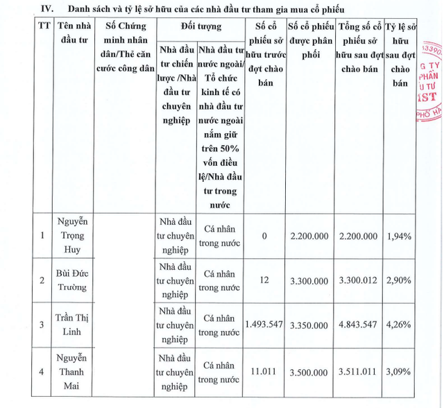 Theo đó, kết thúc đợt chào bán vào 24/11/2025, MST đã phân phối 30 triệu cổ phiếu, tương ứng 100% tổng số cổ phiếu chào bán cho 9 nhà đầu tư chuyên nghiệp trong nước.