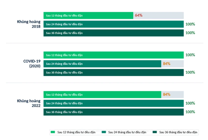Dragon Capital nhận định, ba sự kiện khác nhau hoàn toàn về nguyên nhân và tốc độ phục hồi. Nhưng cả ba đều cho cùng một kết quả: Đầu tư đều đặn qua biến động thường cho kết quả tốt hơn chỉ số trong dữ liệu quan sát được.