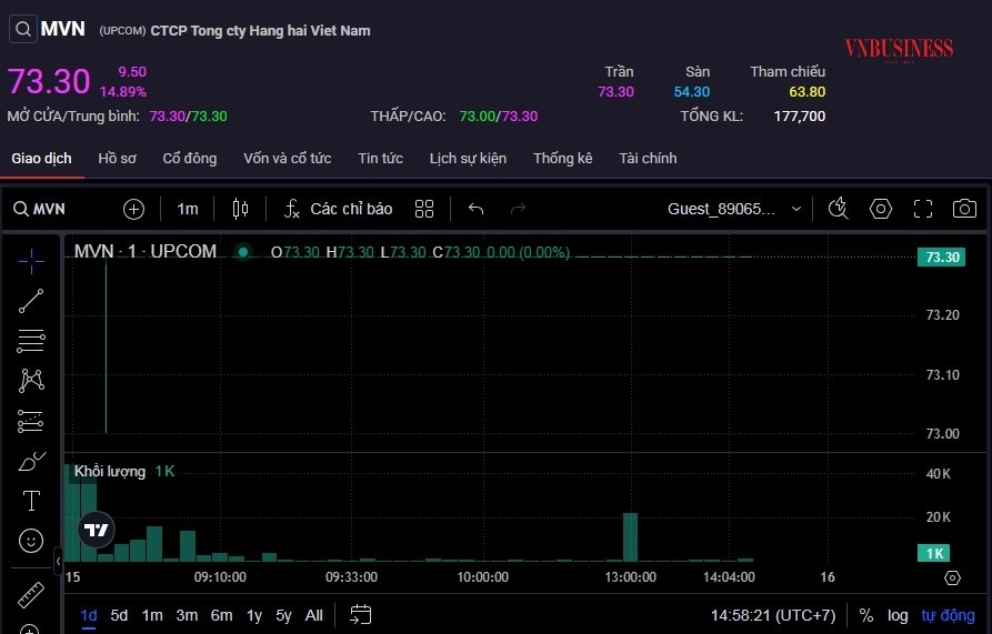 Cổ phiếu MVN tiếp tục tăng trần trong phiên 15/1.