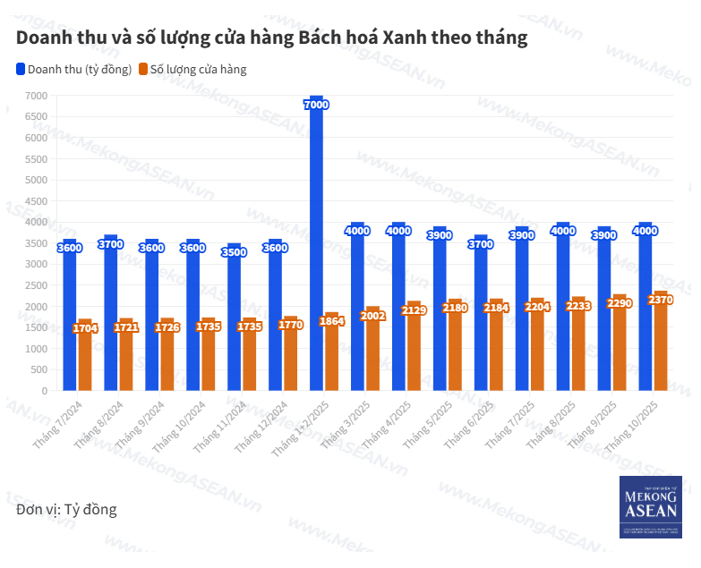 10 tháng đầu năm 2025, chuỗi Bách hóa Xanh đạt gần 38.400 tỷ đồng doanh thu, tăng 13% so với cùng kỳ năm ngoái. Theo ông Linh, dù việc mở mới cửa hàng vượt chỉ tiêu đề ra nhưng mức doanh thu toàn chuỗi chưa đạt so với kế hoạch. Nguyên nhân là do các cửa hàng cũ tăng trưởng không như kỳ vọng, khi thị trường hàng hiêu dùng ở Việt Nam gần như đi ngang, rồi ảnh hưởng của mưa bão, lũ lụt. “Chúng tôi đã nhận diện được vấn đề, cần phải tập trung cho cửa hàng cũ và đã có giải pháp,” ông Linh chia sẻ.
