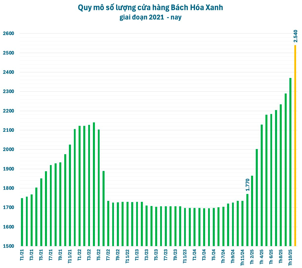 Trên thực tế, MWG đang có những động thái đẩy mạnh chiến lược mở rộng quy mô. Chỉ trong thời gian ngắn, doanh nghiệp đã ồ ạt khai trương hàng trăm cửa hàng mới của chuỗi siêu thị Bách Hóa Xanh. Theo cập nhật trên website bachhoaxanh.com, chuỗi siêu thị bán lẻ thực phẩm và hàng tiêu dùng Bách Hóa Xanh (BHX) hiện có đến 2.540 cửa hàng.