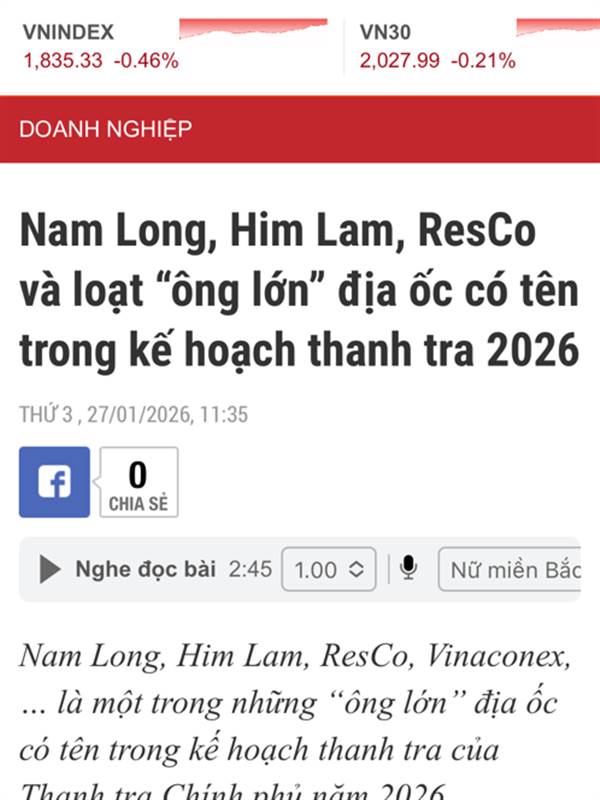 Phản hồi bài viết Nam Long, Him Lam, Saigonres và loạt “ông lớn” địa ốc có tên trong kế hoạch thanh tra 2026