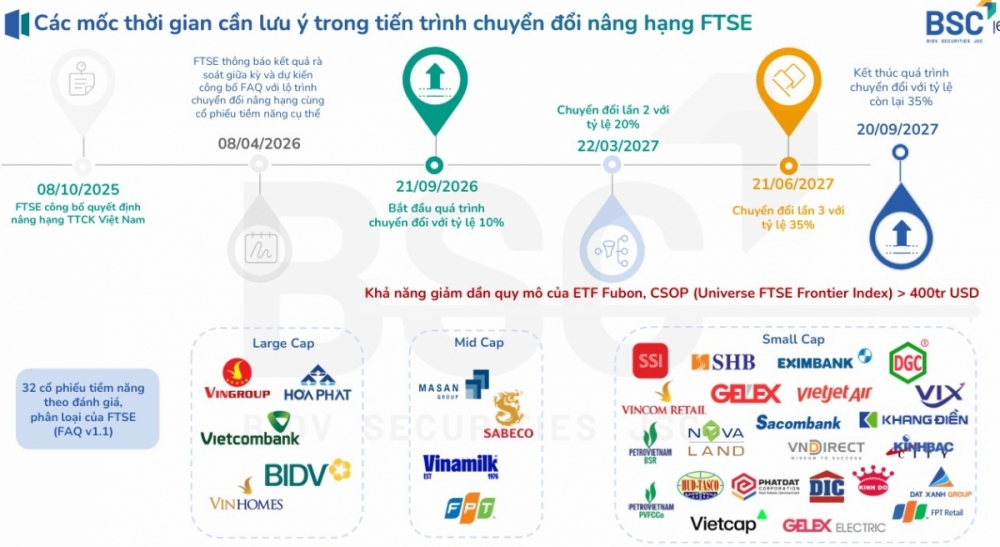 Cách tiếp cận này cho thấy dòng vốn được phân bổ theo từng bước nâng tỷ trọng, trong đó phần lớn quy mô dự kiến tập trung vào các giai đoạn giữa năm 2027. Như BSC Research lưu ý, cấu trúc này nhằm giúp thị trường có thời gian thích nghi với sự thay đổi về dòng vốn và cơ chế vận hành.