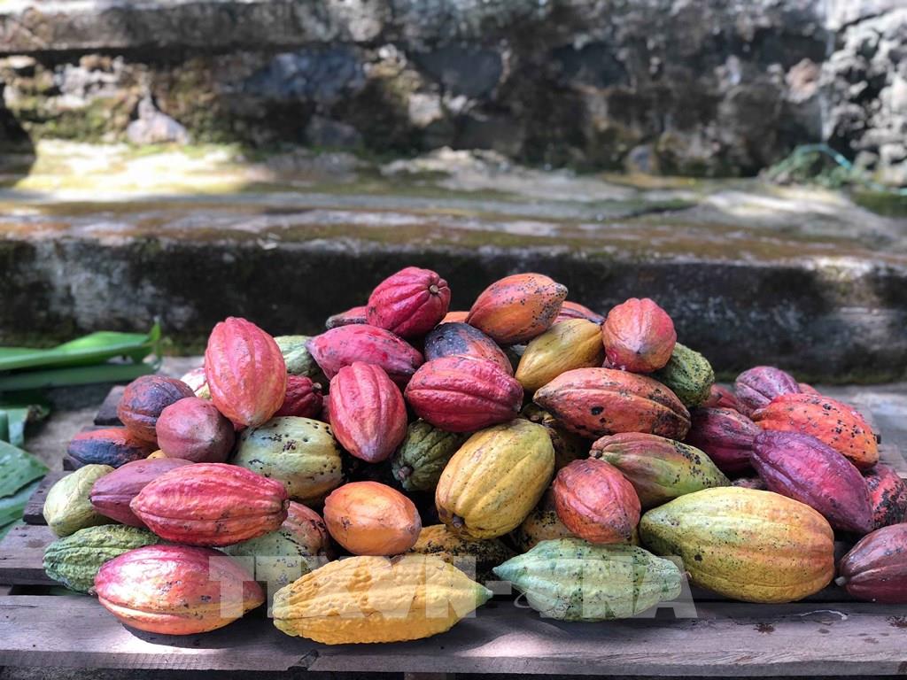 Tại vùng Tây Nguyên hiện có 7 giống ca cao chính đang được canh tác. Ảnh: Kha Phạm - TTXVN