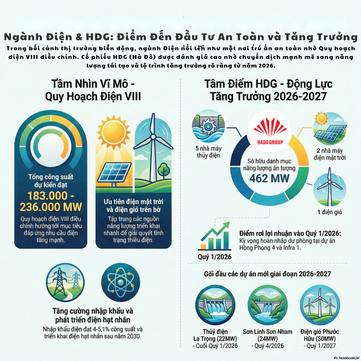 Tóm lại, với nền tảng vững chắc từ các dự án năng lượng hiện hữu và lộ trình phát triển rõ ràng theo sát định hướng của Chính phủ, HDG không chỉ là một cổ phiếu phòng thủ mà còn là một lựa chọn tăng trưởng tiềm năng cho giai đoạn 2026-2027.