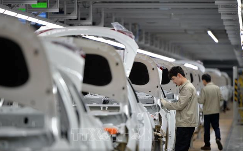 Công nhân làm việc tại một nhà máy sản xuất ôtô của Hyundai, Hàn Quốc. Ảnh: AFP/TTXVN