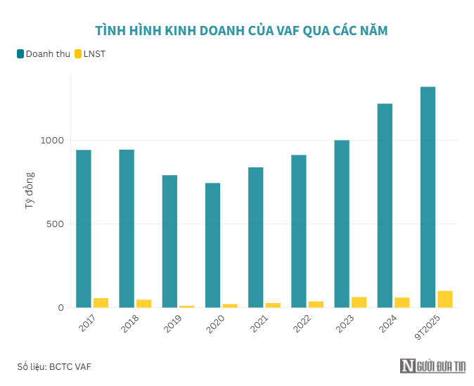 Cùng kỳ, CTCP Phân lân nung chảy Văn Điển (Phân lân Văn Điển, HoSE: VAF) vừa công bố báo cáo tài chính quý III/2025, ghi nhận doanh thu thuần hơn 292 tỷ đồng, tăng 22,7% so với cùng kỳ năm ngoái. Nhờ giá vốn tăng chậm hơn, lãi gộp tăng 79% lên gần 205 tỷ đồng.