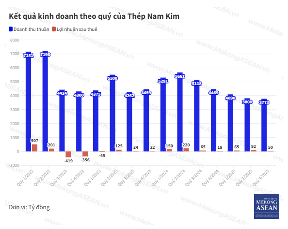 Là doanh nghiệp tôn mạ xuất khẩu lớn, Nam Kim bị ảnh hưởng bởi chính sách bảo hộ thương mại từ các quốc gia. Doanh thu của công ty trong 9 tháng đầu năm đạt 11.672 tỷ đồng, giảm 28% YoY. Trong đó doanh thu nội địa chiếm 6.749 tỷ đồng, tăng 29% YoY; còn doanh thu xuất khẩu đạt 4.975 tỷ đồng, giảm 55% YoY.