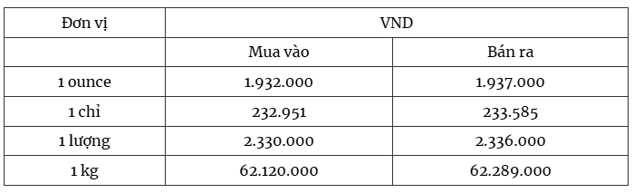 Giá bạc thế giới tăng, hiện ở mức giá 1.932.000 đồng/ounce (mua vào) và 1.937.000 đồng/ounce (bán ra).
