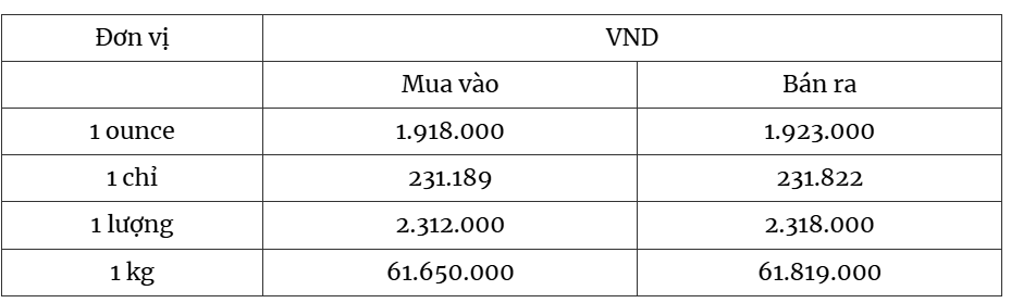 Giá bạc thế giới hiện ở mức giá 1.918.000 đồng/ounce (mua vào) và 1.923.000 đồng/ounce (bán ra).