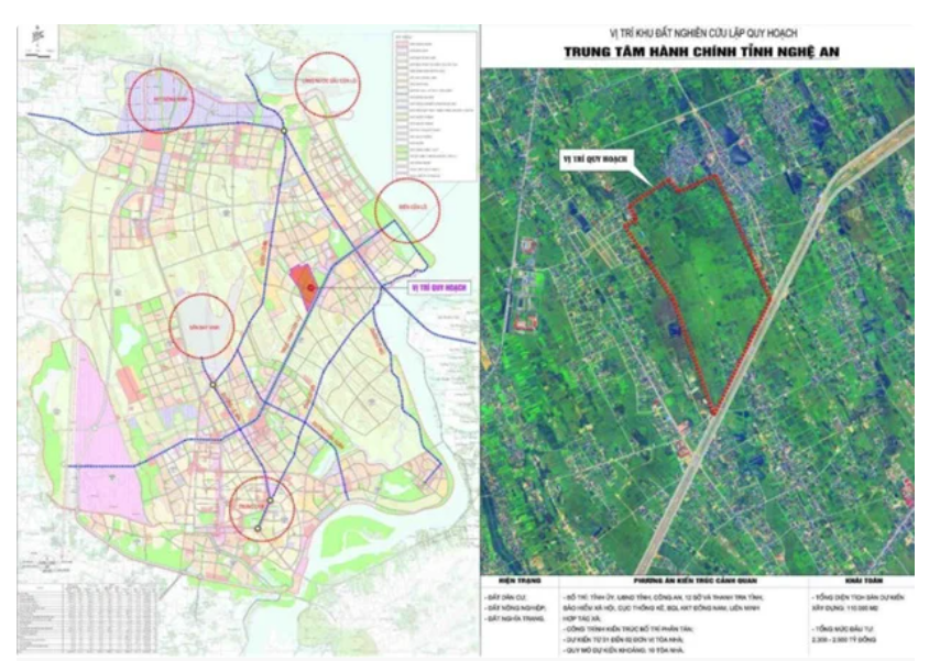 Sơ đồ vị trí khu đất nghiên cứu lập quy hoạch Trung tâm hành chính tỉnh Nghệ An.