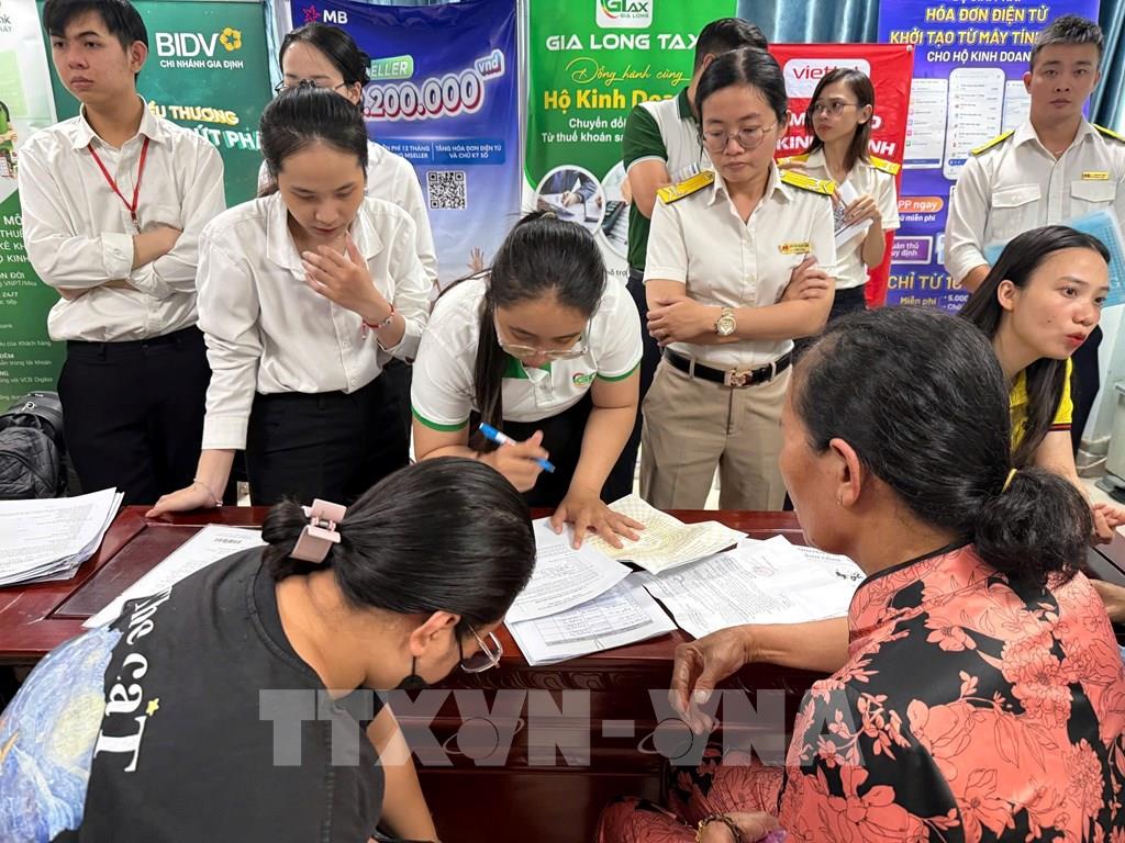 Các đơn vị tư vấn, các nhà cung cấp giải pháp cũng tham gia hỗ trợ hộ kinh doanh sẵn sàng áp dụng mô hình quản lý thuế mới. Ảnh: Hứa Chung-TTXVN