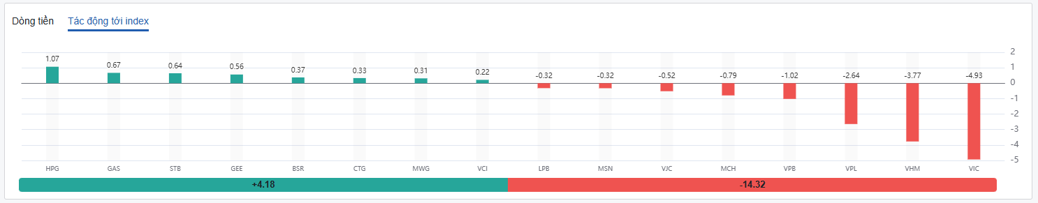 Áp lực bán xuất hiện gần như ngay lập tức khi thị trường mở cửa, trong bối cảnh dư âm thông tin Vingroup rút khỏi dự án đường sắt tốc độ cao Bắc - Nam vẫn bao trùm tâm lý nhà đầu tư.