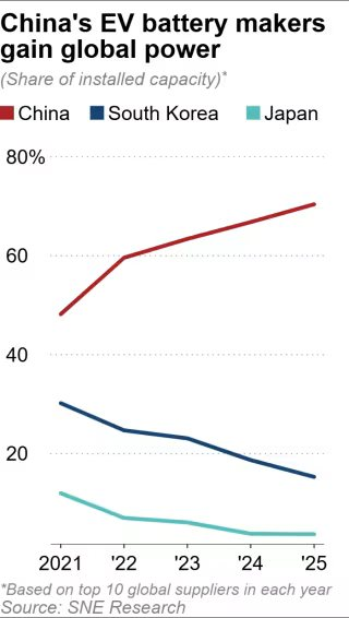 Thị phần liên tục sụt giảm, từ vị thế ngang hàng giờ đây các hãng sản xuất pin đến từ Nhật - Hàn rơi vào thế khó cạnh tranh với Trung Quốc.