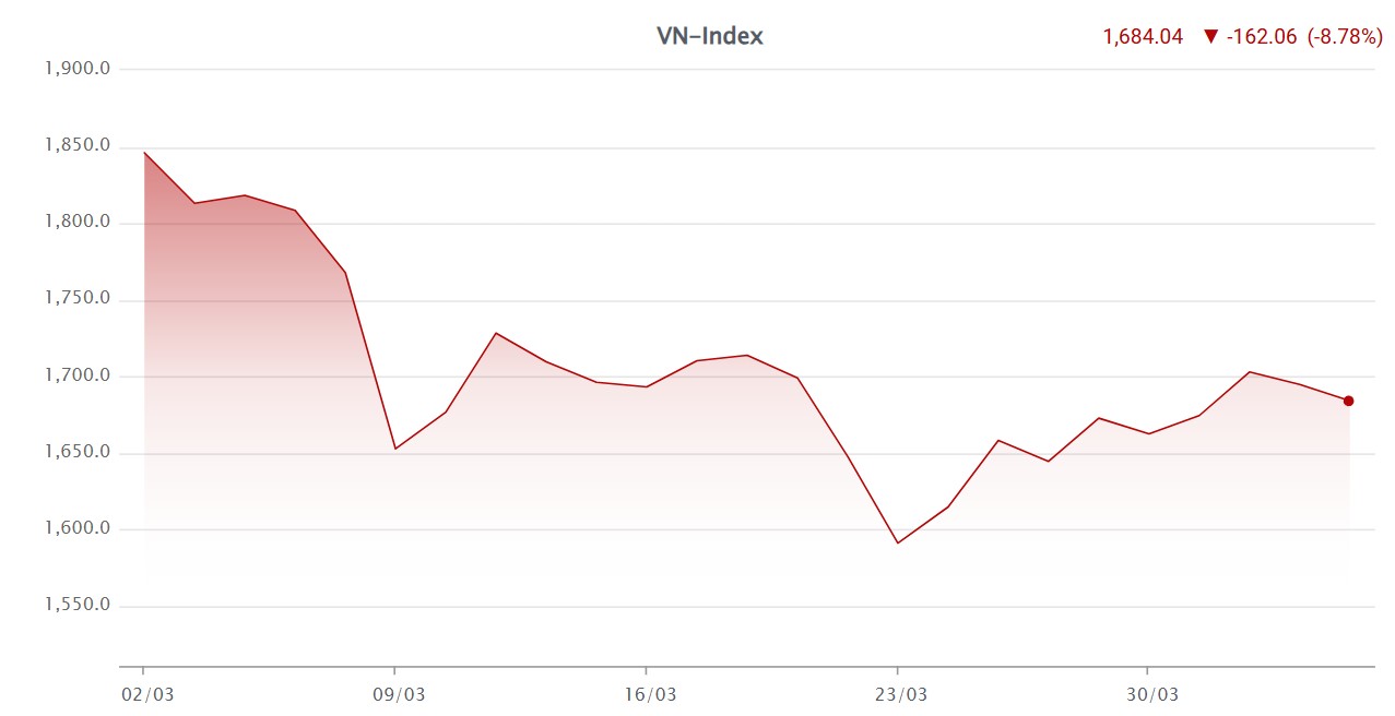 Chỉ số VN-Index vẫn mất hơn 162 điểm kể từ vùng đỉnh đầu tháng 3.
