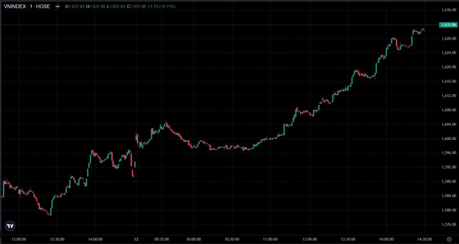 Sau nhiều phiên giằng co, thị trường chứng khoán Việt Nam ngày 12/11 ghi nhận phiên bứt phá mạnh khi nhóm cổ phiếu họ Vingroup đồng loạt tăng tốc. VN-Index vượt mốc 1.630 điểm, đánh dấu mức tăng mạnh nhất trong hơn một tháng qua.