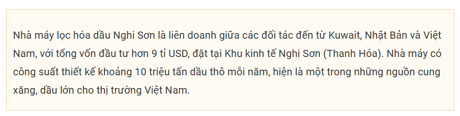 Lần đầu kể từ khi vận hành thương mại, Nhà máy lọc hóa dầu Nghi Sơn đã tiếp nhận, chế biến thành công lô dầu thô không xuất xứ từ Kuwait. Đây được xem là bước tiến quan trọng nhằm gia tăng tính linh hoạt nguồn nguyên liệu.