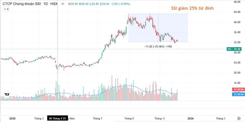 +Nhiều cổ phiếu khác vẫn đang giảm 20–40% so với đỉnh tháng 9.