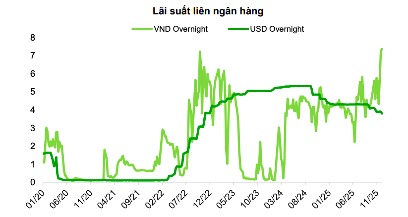 Trên thị trường liên ngân hàng, chuyên gia từ VCBS, nhận định áp lực thanh khoản trong năm 2026 sẽ gia tăng so với năm 2025. Nguyên nhân chủ yếu đến từ lộ trình đẩy mạnh tăng trưởng tín dụng nhằm tạo động lực cho mục tiêu tăng trưởng GDP khoảng 10%.