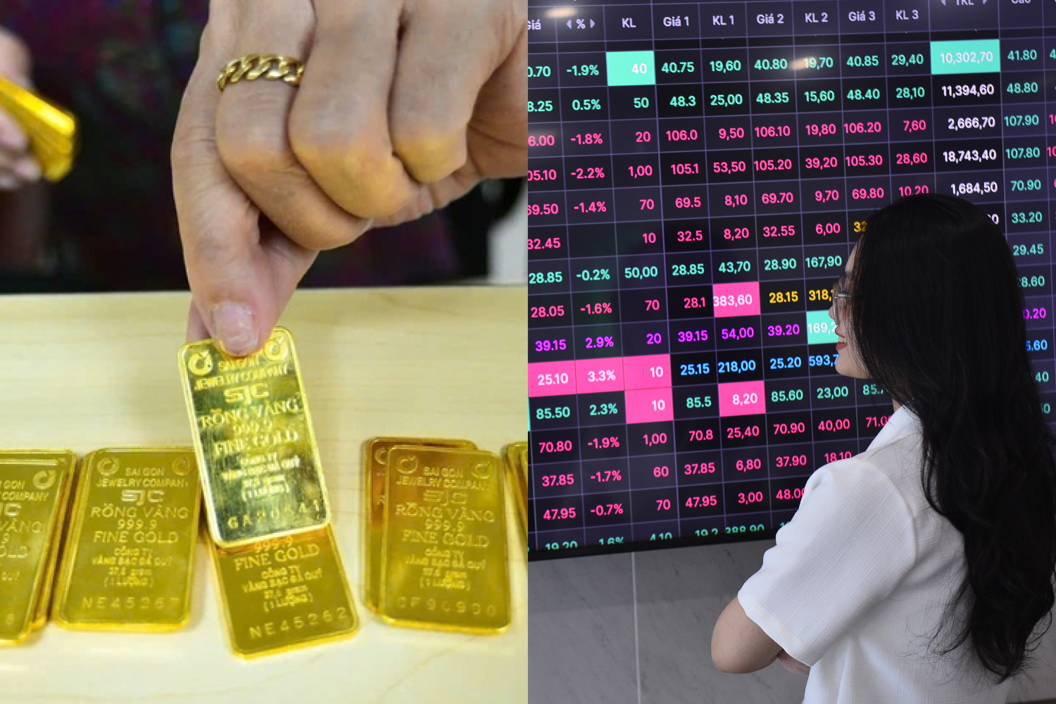 Trong khi đó trên thị trường chứng khoán, VN-Index ngày 11-12 đóng cửa quanh mốc 1.700 điểm, tăng 35% so với đầu năm. Dù mức tăng của chỉ số thấp hơn vàng, thị trường vẫn ghi nhận nhiều cổ phiếu có tỉ suất sinh lời vượt kim loại quý.