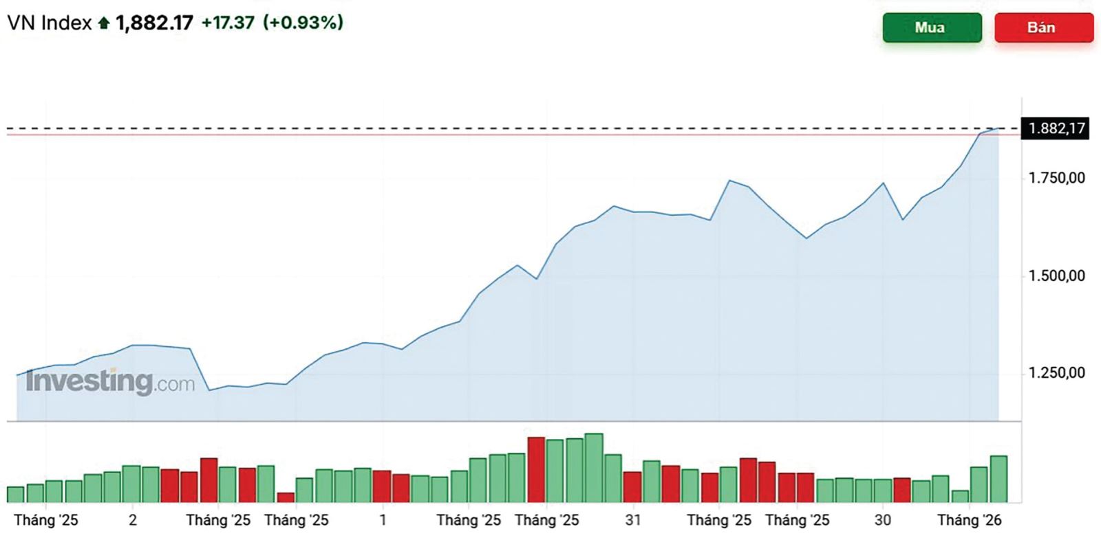 TTCK ghi nhận sự bùng nổ về thanh khoản, vốn hóa cũng như tăng trưởng về mặt điểm số. VN-Index tăng mạnh 41% tính từ đầu năm 2025.