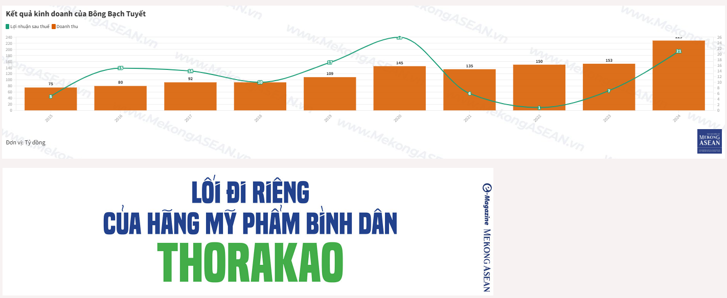 Từ năm 2018 đến năm 2024, doanh thu của Bông Bạch Tuyết liên tục tăng trưởng. Năm 2024, công ty đạt doanh thu 229 tỷ đồng - tăng 50% YoY và cao nhất kể từ khi công bố báo cáo tài chính (năm 2004). Tuy nhiên lợi nhuận công ty lại trồi sụt thất thường do các chi phí biến động, khi phải đầu tư mạnh cho việc chinh phục lại thị trường. Mức lợi nhuận cao nhất mà doanh nghiệp này đạt được là 26 tỷ đồng, vào năm 2020. Ba năm gần đây (2022 - 2024), BBT còn được hỗ trợ lớn bởi doanh thu tài chính với hơn 10 tỷ đồng mỗi năm, chủ yếu từ lãi tiền gửi, cho vay.