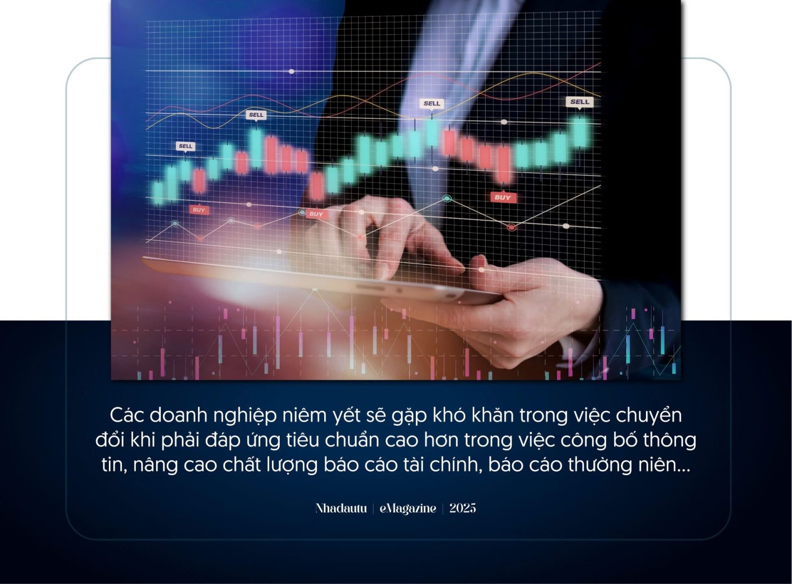 Tuy nhiên, như đã nói, thách thức và cơ hội cũng song hành với nhau. Các doanh nghiệp niêm yết sẽ gặp khó khăn trong việc chuyển đổi khi phải đáp ứng tiêu chuẩn cao hơn trong việc công bố thông tin, nâng cao chất lượng báo cáo tài chính, báo cáo thường niên… Dù có sự cải thiện, song cũng cần phải nhìn nhận rằng chất lượng công bố thông tin của doanh nghiệp Smallcap (vốn hóa nhỏ) vẫn rất kém.