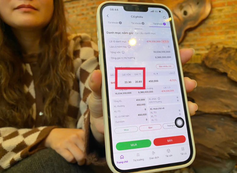 Khi giá thị trường của cổ phiếu SHS giảm xuống còn 20.4 trong phiên ngày 15/1, số tiền lỗ của chị Như bị tăng thêm do giá vốn hiển thị chưa chính xác. Điều này làm cho nhà đầu tư là chị Tố Như vô cùng hoang mang.