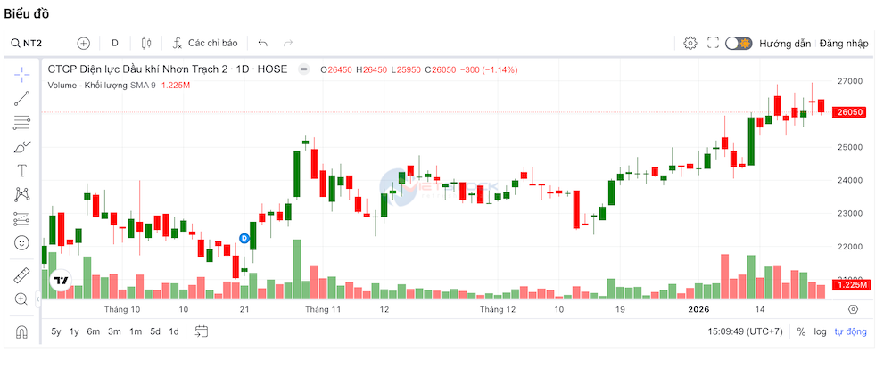 Xu hướng giá cổ phiếu NT2 từ quý IV/2025 đến nay (Nguồn: Vietstock)