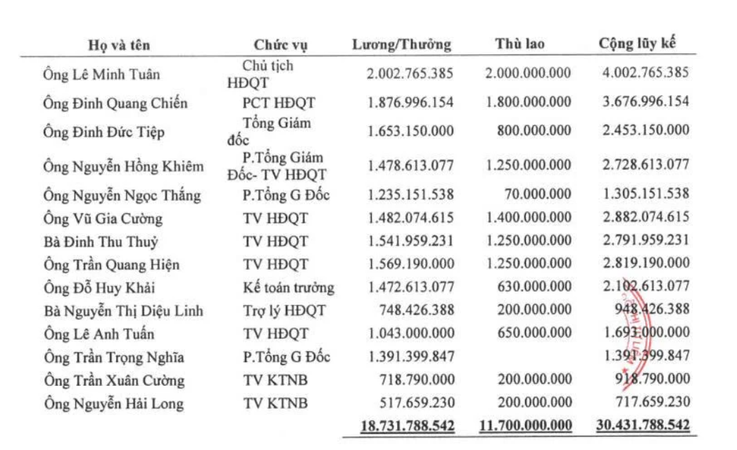 Một điểm khác đáng chú ý là dù doanh nghiệp đang kinh doanh trong trạng thái lợi nhuận “mỏng như lá lúa”, Lideco vẫn chi mạnh tay cho tiền lương, thưởng và thù lao ban lãnh đạo, với tổng số tiền hơn 30,4 tỷ đồng trong năm, trong đó riêng lương, thưởng chiếm 18,7 tỷ đồng và thù lao lên tới 11,7 tỷ đồng, chủ yếu dành cho Chủ tịch HĐQT, các Phó Chủ tịch, Tổng giám đốc và nhóm thành viên HĐQT.