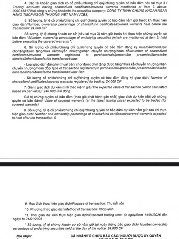 - Ngày dự kiến kết thúc giao dịch: 21/01/2026.