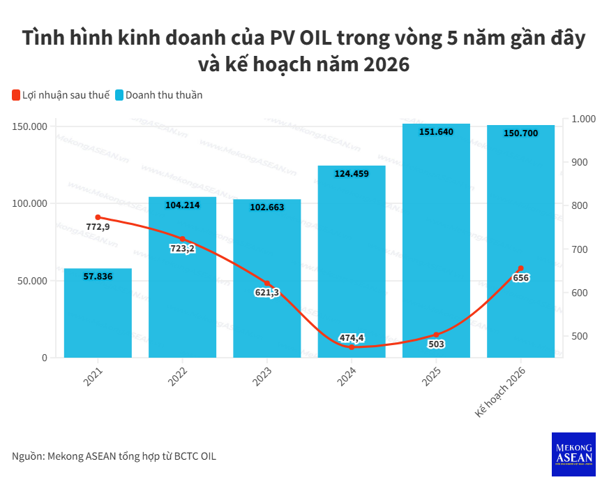 Dựa trên dự báo kinh tế thế giới năm 2026 thiếu ổn định do áp lực địa chính trị và xung đột quân sự leo thang tác động trực tiếp đến giá dầu, PV OIL xây dựng kế hoạch kinh doanh với sự thận trọng nhưng tối ưu về hiệu quả. Tổng công ty đặt mục tiêu doanh thu hợp nhất năm 2026 đạt 150.700 tỷ đồng, gần như đi ngang so với mức thực hiện của năm 2025 (151.640 tỷ đồng).