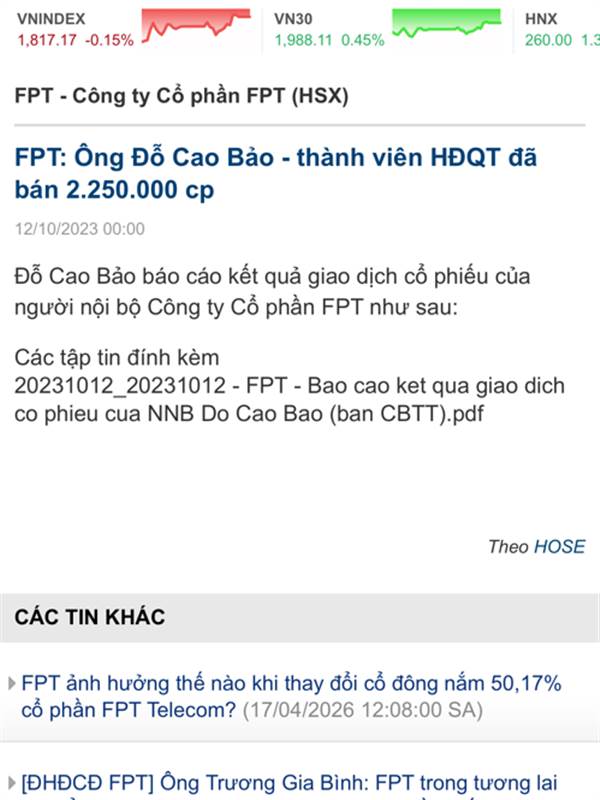 Phản hồi bài viết Ông Đỗ Cao Bảo: “FPT giảm 26.000 nhân sự chỉ trong 15 tháng” là thông tin sai sự thật