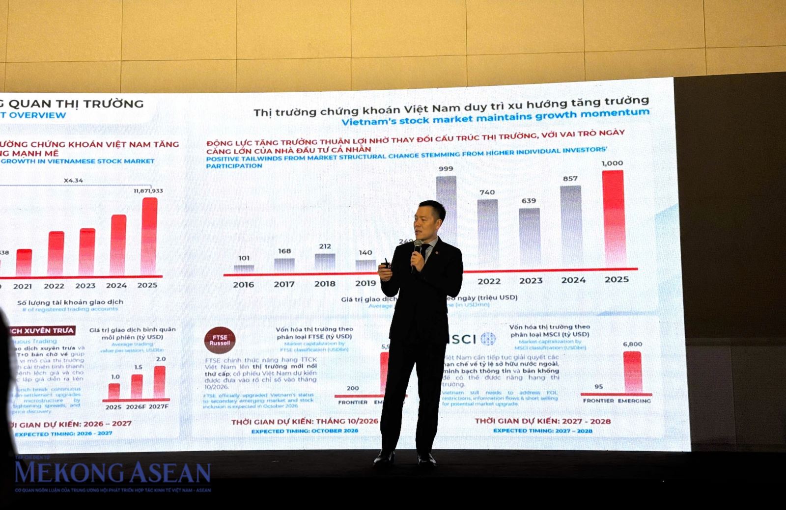 Ông Nguyễn Hoàng Giang phát biểu tại ĐHĐCĐ thường niên năm 2026 của DNSE. Ảnh: Minh Phong - Mekong ASEAN