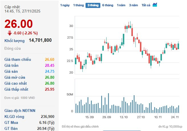 Theo đó, Ngày 26/11/2025, Ủy ban Chứng khoán Nhà nước (UBCKNN) ban hành Quyết định số 458/QĐ-XPHC về việc xử phạt vi phạm hành chính trong lĩnh vực chứng khoán và thị trường chứng khoán đối CTCP Đầu tư hạ tầng kỹ thuật TP.HCM (HoSE: CII). Địa chỉ trụ sở chính tại Tầng 12, 152 Điện Biên Phủ, phường Thạnh Mỹ Tây, TP.HCM.