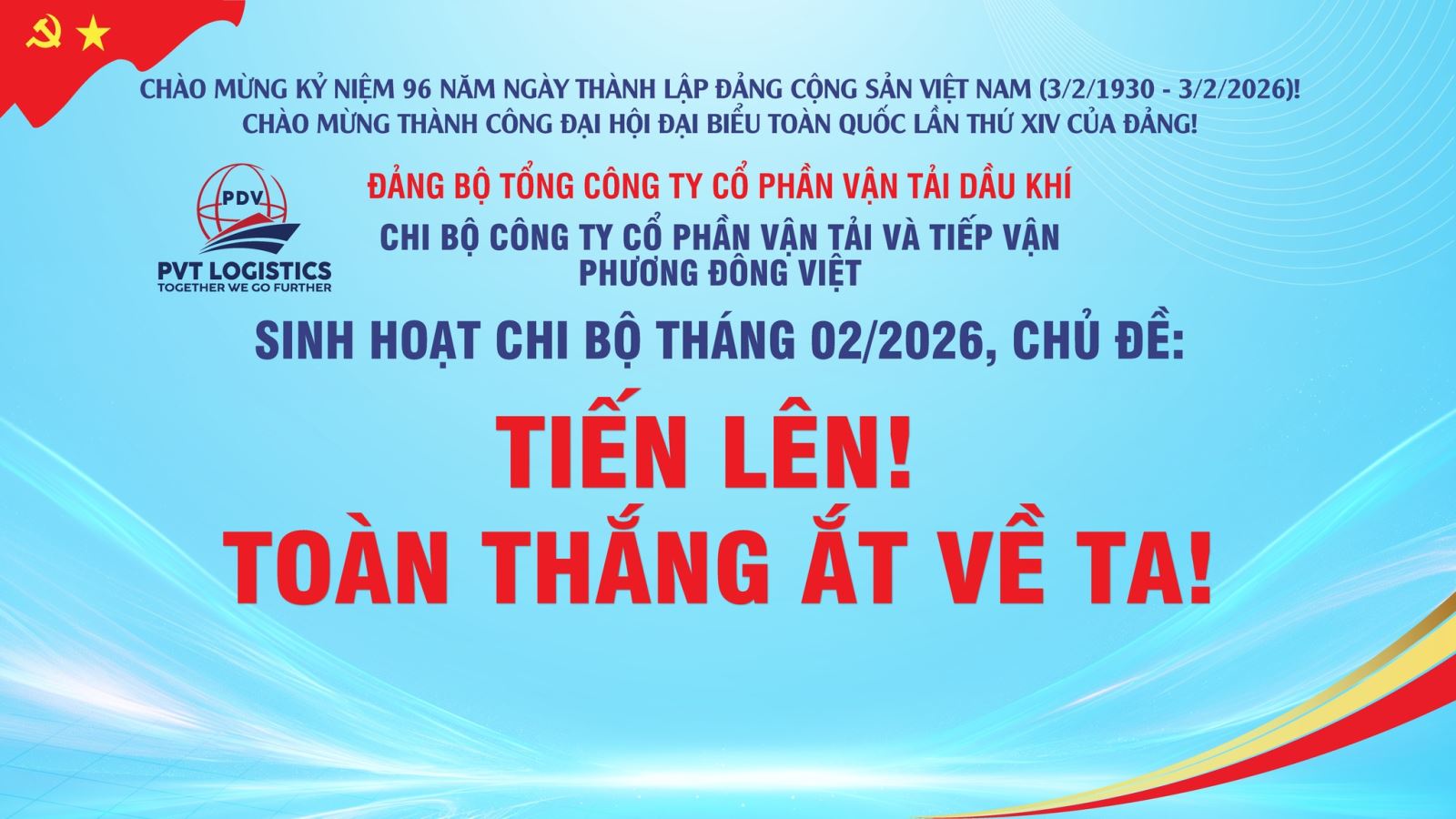 Vừa qua, vào chiều ngày 02/02/2026, Chi bộ Công ty CP Vận tải và Tiếp vận Phương Đông Việt (PVT Logistics) đã tổ chức kỳ Sinh hoạt Chi bộ mở rộng tháng 02/2026. Đây là bước đệm quan trọng để triển khai các mục tiêu chiến lược trong năm mới.