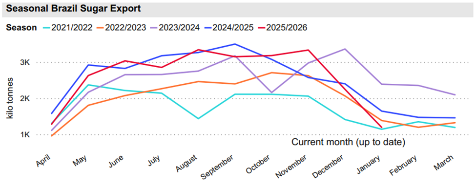 Thị trường có thể chứng kiến một sự thắt chặt nguồn cung mang tính mùa vụ trong quý 1 năm 2026. Đây là thời điểm vùng trung-nam brazil bước vào giai đoạn trái vụ, khiến lượng đường thô sẵn có trên thị trường tạm thời giảm xuống. Giai đoạn này có thể tạo ra một "cửa sổ" cơ hội ngắn hạn cho giá phục hồi nhẹ trước khi nguồn cung từ vụ mùa mới trở lại.
