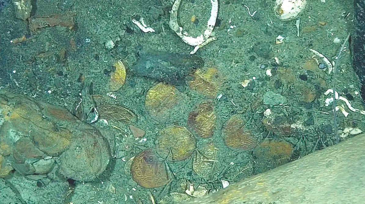 Trong số các báu vật được đưa lên mặt nước lần này có những đồng tiền vàng và đồng, một chiếc tách sứ và cả một khẩu thần công, tất cả đều được lấy từ đáy biển Caribe nơi con tàu nằm yên suốt nhiều thế kỷ.