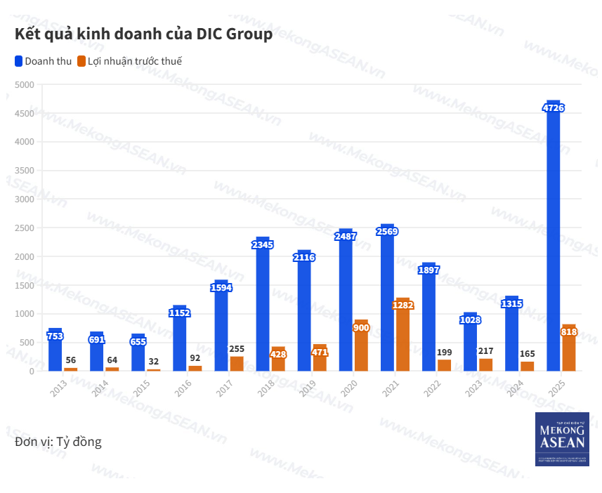 Điển hình như Tổng CTCP Đầu tư Phát triển Xây dựng (DIC Group, mã DIG), lãi sau thuế 624 tỷ đồng, gấp 6 lần năm trước (YoY) và cao nhất trong 4 năm gần đây.