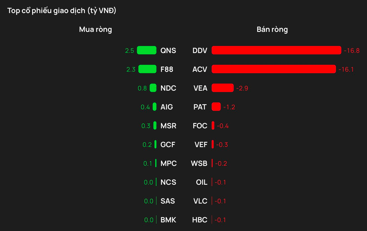 Ngược chiều, DDV bị khối ngoại bán ròng 17 tỷ đồng. Ngoài ra khối ngoại cũng bán ròng tại ACV, VEA,...