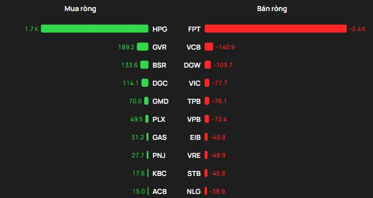 Chiều mua, điểm nhấn thuộc về cổ phiếu HNG khi được khối ngoại mua ròng đột biến khoảng 172 tỷ đồng, trong khi các mã còn lại trong nhóm mua ròng chỉ ghi nhận giá trị khiêm tốn, phổ biến ở mức vài tỷ đồng.