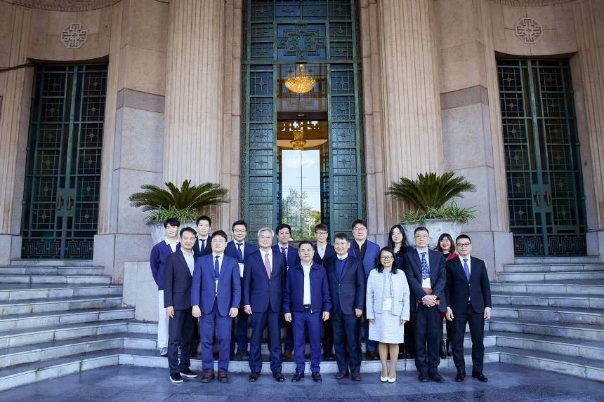 Phó Thống đốc Nguyễn Ngọc Cảnh chụp ảnh lưu niệm cùng đoàn công tác Hàn Quốc
