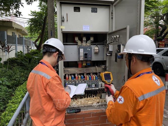 Công nhân điện lực EVNHANOI kiểm tra hệ thống điện. Ảnh tư liệu: Nguyễn Văn Cảnh/TTXVN