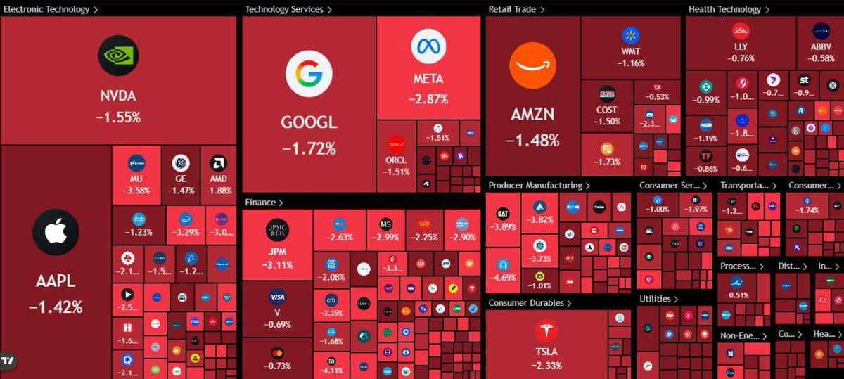 Ngoài các rủi ro vĩ mô, thị trường còn chịu sức ép từ những biến động trong khu vực công nghệ và tài chính. Một số nhà đầu tư lo ngại rằng AI đang tái cấu trúc thị trường lao động, gây ra làn sóng cắt giảm nhân sự trong nhiều ngành.