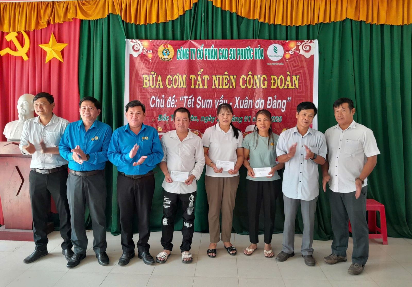 Trong không khí rộn ràng đón Xuân mới Bính Ngọ 2026, giữa những hàng cao su đang thay lá và nhịp máy rộn ràng những ngày cuối năm, niềm vui Tết đến sớm hơn với người lao động Công ty CP Cao su Phước Hòa.