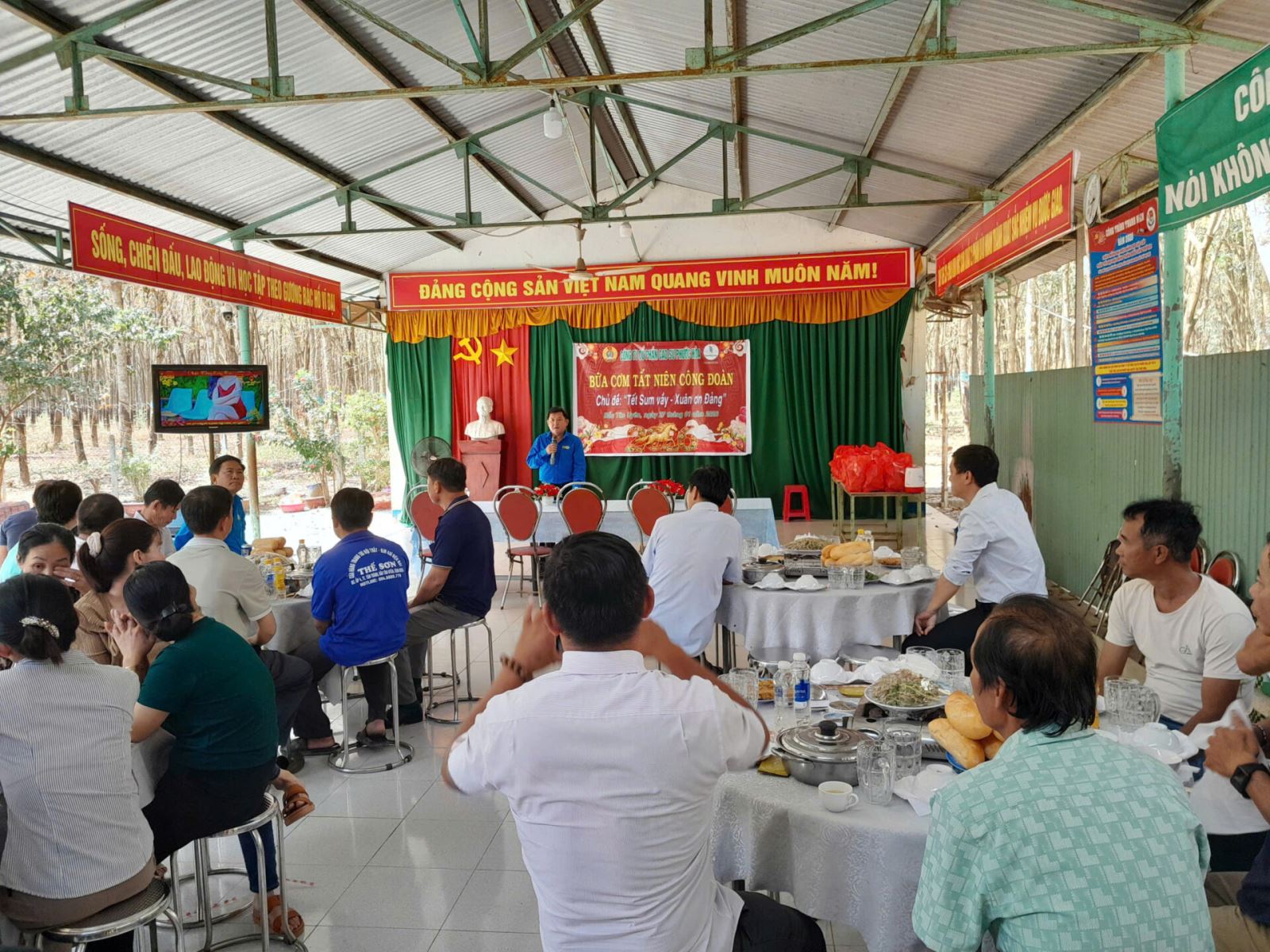 Công đoàn công ty tổ chức bữa cơm Công đoàn cho công nhân.