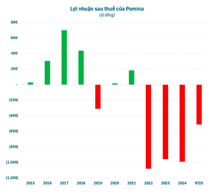 Về tình hình kinh doanh, trong 3 năm gần nhất 2022-24, Pomina đều lỗ trên dưới nghìn tỷ đồng mỗi năm. Trong 9 tháng đầu năm 2025, doanh nghiệp này tiếp tục lỗ hơn 500 tỷ đồng, đẩy lỗ luỹ kế lên hơn 3.000 tỷ đồng. Kết quả này chính thức đẩy Pomina vào tình trạng âm vốn chủ sở hữu.