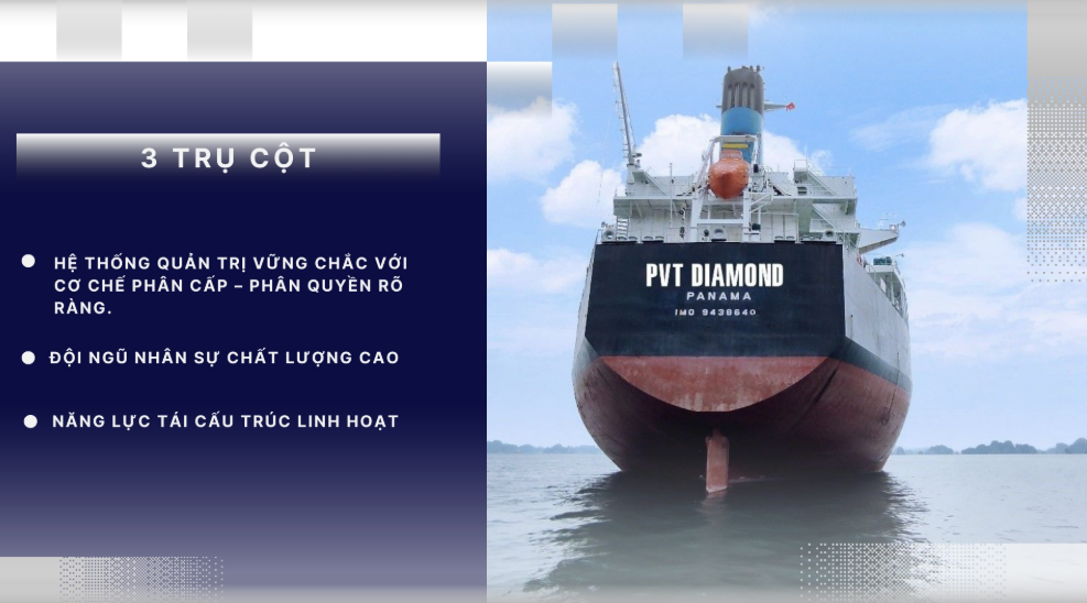 Chủ tịch HĐQT PVTrans Phạm Việt Anh khẳng định, thành tựu này không đến từ may mắn, mà là kết quả của quá trình bền bỉ xây dựng nội lực trên ba trụ cột. Thứ nhất là hệ thống quản trị vững chắc với cơ chế phân cấp – phân quyền rõ ràng từ Tổng công ty đến các đơn vị thành viên, vừa khơi thông nguồn lực, vừa đảm bảo giám sát và định hướng. Thứ hai, đội ngũ nhân sự chất lượng cao – sự cộng hưởng giữa kinh nghiệm của thế hệ đi trước và sức trẻ của lớp kế cận, tạo nên sức mạnh nội tại. Thứ ba, năng lực tái cấu trúc linh hoạt, luôn chủ động điều chỉnh kế hoạch và thâm nhập vào những thị trường khó tính hơn.
